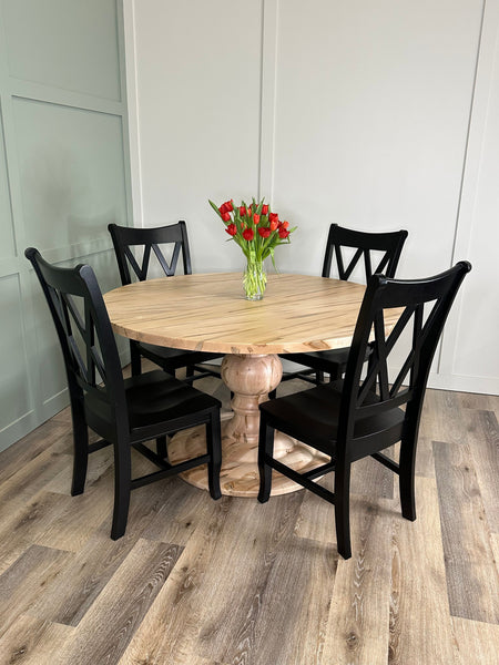 Introducing the Adams Table, a robust and stylish piece that embodies classic craftsmanship with a modern touch. Whether you choose a round pedestal or rectangular trestle design, the Adams Table is fully customizable to suit your specific preferences. Available in a variety of wood types, such as Ash, White Oak and Walnut, as well as a range of sizes and finishes, this table is meticulously made to order to complement your home’s unique style and dimensions.
