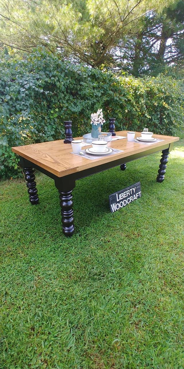 Enjoy free shipping on all all unfinished table bases and legs ordered within the continental US. For finished tables, please reach out to us for a custom shipping quote tailored to your location.! Just text us at 336-689-1161 or email info@libertywoodcraft.com for any additional questions and details.