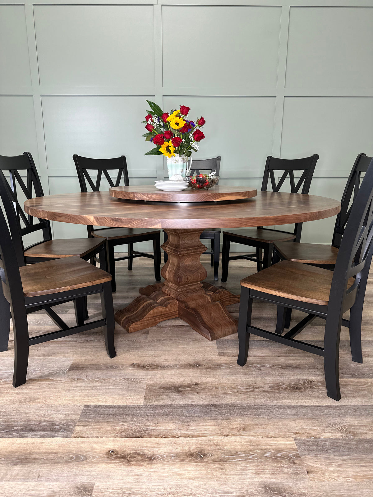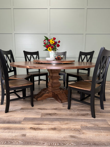 Introducing the Franklin Table, a bold and stately piece that exudes timeless charm and solid craftsmanship. Available in both round pedestal and rectangular trestle designs, the Franklin Table is fully customizable to suit your space. Choose from a variety of premium wood types, including Ash, White Oak and Walnut, and tailor the size and finish to create a unique table that fits perfectly into your home or office.