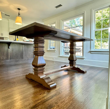 Introducing the Hancock Table, a bold and distinguished piece that combines traditional craftsmanship with modern versatility. Available in both round pedestal and rectangular trestle designs, the Hancock Table is fully customizable to suit your space and style. Choose from a variety of premium wood types, including Ash, White Oak and Walnut, along with custom sizes and finishes, allowing you to create a table that fits seamlessly into your home.