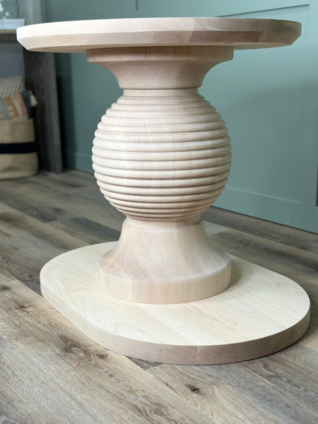 The BeeHive Pedestal is an intricate piece, designed to bring warmth and charm to your home. With its unique design and delicate detailing, this pedestal is a perfect fit for smaller tables and accent furniture. Each Honey Bee Pedestal is handcrafted to bring out the rich character of the wood, creating a one-of-a-kind piece for your space.